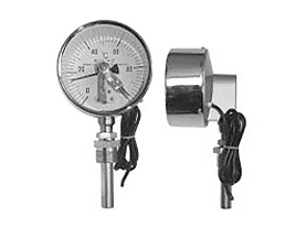 电接点双金属温度计应用于生产现场对温度需自动控制和报警。可以直接测量各种生产过程中的-80℃-+500℃范围内液体、蒸汽和气体介质温度。