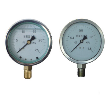 耐震压力表是依靠内部冲灌阻尼油和配置缓冲装置等措施来缓冲压力的,具有良好的耐震性能。它适用于被测介质的压力有强烈脉冲变化或压力冲击和在生产工艺中经常突然卸荷的场合,以及现场环境震动较大的场合。耐震压力表能检测气体、液体脉动压力的平均值,以克服介质强烈脉冲及环境震动对仪表带来的伤害,确保读数的准确性。不锈钢耐震压力表的外壳用不锈钢材料制成,可在有腐蚀性、振动较大恶劣环境中使用。